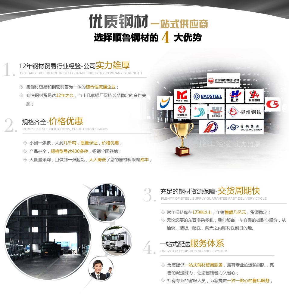 重慶順魯物資有限公司生產(chǎn)的無(wú)縫管,結(jié)構(gòu)管,流體管,低中壓鍋爐管,高壓鍋爐管,化肥專(zhuān)用管,石油套管,船舶用管及各種材質(zhì)國(guó)產(chǎn)進(jìn)口合金管,日本,美國(guó),意大利等國(guó)家產(chǎn)無(wú)縫鋼管等。銷(xiāo)往成都,天津,寶鋼,冶鋼,鞍鋼,衡鋼,無(wú)錫,首鋼,長(zhǎng)城特鋼,撫鋼,浙江,江蘇等地。 通過(guò)近幾年的努力,公司已成為國(guó)內(nèi)較大規(guī)模的合金管、碳素鋼管的銷(xiāo)售基地,先后與全國(guó)各大電廠(chǎng),鍋爐廠(chǎng),石油,化工,機(jī)械等企業(yè)相繼建立了穩(wěn)定的供貨關(guān)系,公司遵循誠(chéng)信經(jīng)營(yíng),貨真價(jià)實(shí),優(yōu)質(zhì)服務(wù)的宗旨,贏(yíng)得了用戶(hù),拓展了市場(chǎng),建立了廣泛的銷(xiāo)售網(wǎng)絡(luò),以質(zhì)量求信譽(yù),以信譽(yù)求發(fā)展,以雄厚的實(shí)力、優(yōu)質(zhì)的產(chǎn)品、低廉的價(jià)格深得新老用戶(hù)的信賴(lài);歡迎來(lái)電垂詢(xún)或親臨指導(dǎo)。...